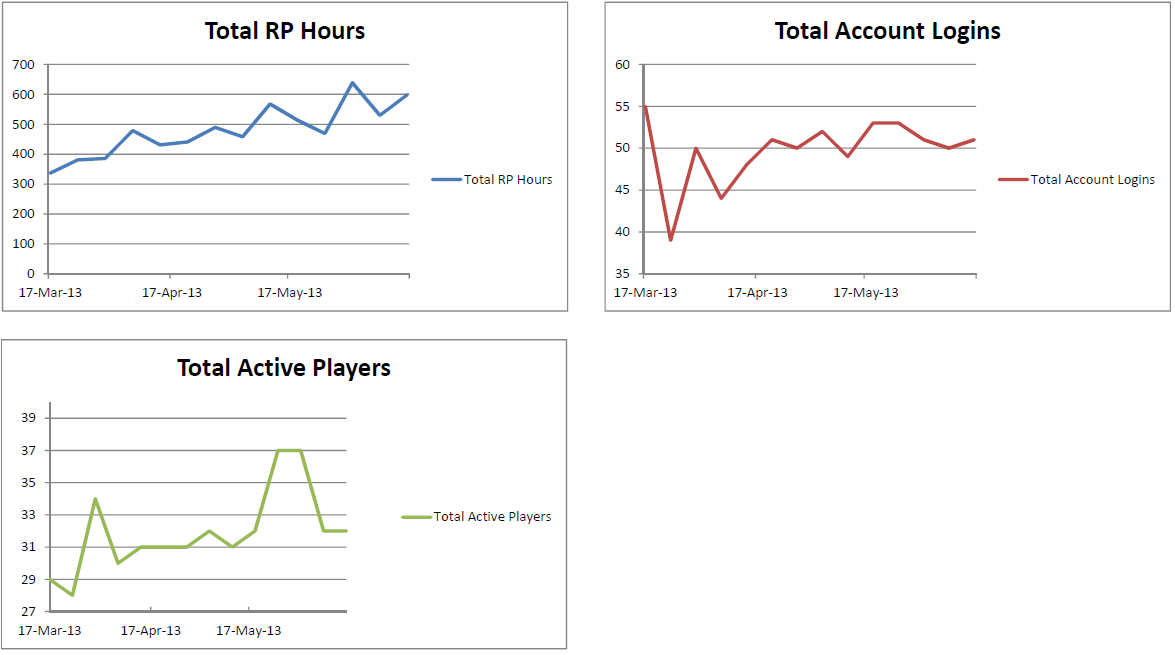 Here are our recent statistics from March 2013 to June 2013. I'm still collecting the data to make pretty graphs...